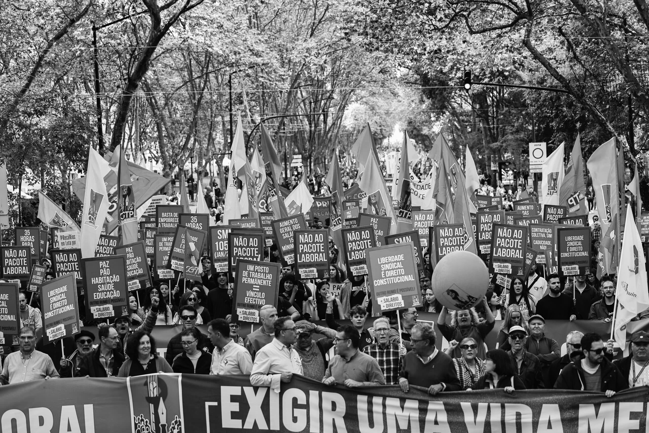 CGTP ise bu kez grev gözcülüklerinin (piketlerin) yaygın biçimde örgütlenmesine dâhil olmadı; birçok durumda yalnızca tabanın inisiyatifiyle örgütlenenleri desteklemekle yetindi. Parlamentonun önüne yürümek üzere çağırdığı, genç ve mücadeleci büyük gösteride de, kortejin en önünde duyulmak üzere her zamanki konuşmalarını yapmakla yetindi. Ardından, gösterici kollarının dar sokaklarda parlamentonun önündeki meydana girebilmek için saatler boyunca akmaya devam ettiği mekândan derhâl ayrıldı. CGTP’nin ayrılmasıyla birlikte, çağrısına uyan ve liderliğine güvenen göstericiler de polis karşısında, herhangi bir yönlendirme olmaksızın ve sonrasında sert bir baskıya yol açan provokasyonlara açık biçimde ortada bırakılmış oldu.