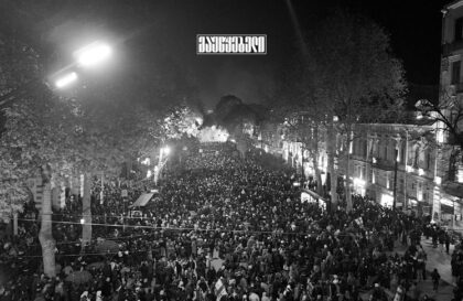 Ashley Smith, Ilya Budraitskis, Ia Eradze, Luka Nakhutsrishv, Lela Rekhviashvili Tiflis’te kitlesel gösteri, 5 Aralık 2024. Fotoğraf (https://www.facebook.com/photo/? fbid=1162886352503483&set=pb.100063463873729.-2207520000)…